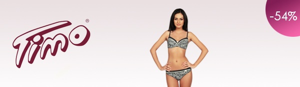 Timo, producatorul ceh de lenjerie intima, costume de baie, pijamale si haine destinate timpului liber, este chiar acum pe Fashion Days. Iti prezentam o campanie de lenjerie intima clasica, senzuala si eleganta decorata cu dantela delicata careTimo, producatorul ceh de lenjerie intima, costume de baie, pijamale si haine destinate timpului liber, este chiar acum pe Fashion Days. Iti prezentam o campanie de lenjerie intima clasica, senzuala si eleganta decorata cu dantela delicata care iti va pune in valoare forma corpului si pijamale colorate in care te vei simti minunat. Bucura-te de confort superior si stil cu noua colectie pentru femei Timo!